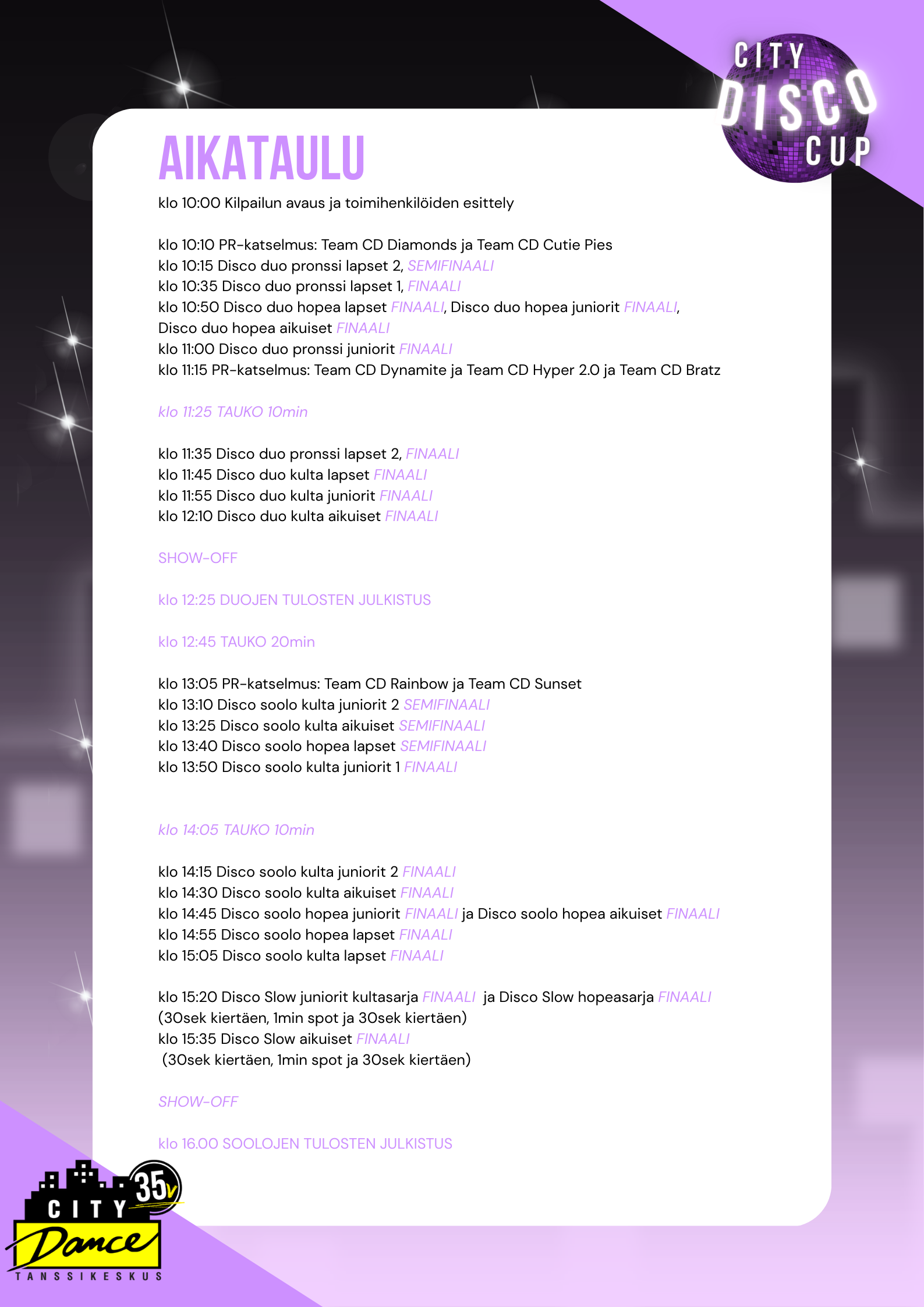 CityDiscoCup on Oulun Citydancella järjestettävä discotanssikilpailu!